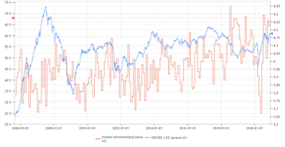 Ponad 3 lata temu, we wpisie "najwięcej w historii rekomendacji kupna" omówiliśmy sobie wskaźnik, który opiera się na agregowaniu informacji płynących z rekomendacji wydawanych przez biura maklerskie. Z jednej takie pojedyncze rekomendacje mogą być mało wiarygodne gdyż jest ryzyko, że są np. pisane pod osiągnięcie pewnego celu, z drugiej podlinkowany powyżej artykuł pokazuje, że jeśli potraktujemy je zbiorczo, to niosą pewną informację.