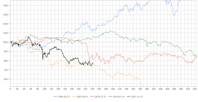 4 na 5 takich sygnałów oznaczały nadejście bessy. Jedyny sygnał, który nie sprowadził spadków miał miejsce w 2005 r. gdy bessa na GPW została "anulowana" przez wejście Polski do Unii Europejskiej i związany z tym faktem napływ kapitału.